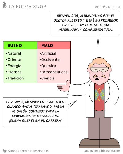 Editado: en esta viñeta de La pulga snob se resumen unos cuantos correos y comentarios que he recibido por este artículo.Tanta medicina “opinativa” sin aportar pruebas serias ni evidencias científicas cansa un poquito…