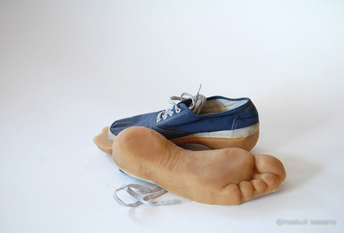 A través de Street Anatomy me entero de la existencia de estos zapatos tan curiosos. A algunos les dará grima, a mí me produce fascinación ver su suela, imitando pies y pezuñas: