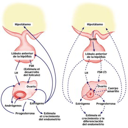 Los anticonceptivos hormonales orales no hacen más que engañar al cuerpo. Se presentan en envases con 28 comprimidos, cada uno en su compartimento, indicándose el día en que deben ser tomado porque la cantidad de una u otra hormona va variando poco a poco, imitando el ciclo natural del cuerpo humano, siendo las siete últimas píldoras un placebo, indicado con otro color. Esas píldoras contienen estrógenos y progestágenos en cantidades suficientes como para llegar al hipotálamo y la hipófisis y, mediante ese mecanismo de retroalimentación negativa, inhibir la elaboración y secreción de FHS y LH; estas dos últimas hormonas no llegan al ovario, por tanto éste no elabora las restantes hormonas ni prepara ningún óvulo nuevo para ser expulsado, evitándose la ovulación. Se crea un ciclo menstrual artificial, porque el estrógeno y el progestágeno contenidos en las píldoras son suficientes para causar la diferenciación del endometrio, pero esta diferenciación es escasa e inadecuada para cumplir su labor. Al llegar a las píldoras placebos se produce una eliminación brusca de la cantidad de hormonas que el cuerpo recibe, teniendo lugar la menstruación. Asimismo, se inhibe la contractilidad de las trompas de Falopio, el moco cervical se hace más escaso y espeso, de manera que los espermatozoides ven dificultado su ascenso; y en caso de que hubiera una ovulación y posterior fecundación (se da en un pequeño porcentaje, por irregularidad en la toma de la píldora) el embrión no logra aferrarse al endometrio y es eliminado junto con él en esa menstruación artificial.
